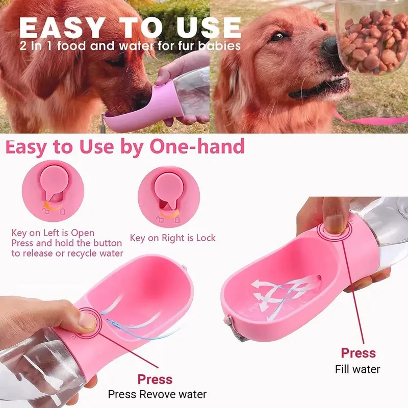 Característica: 2 en 1 , puedes llevar agua y comida o premios