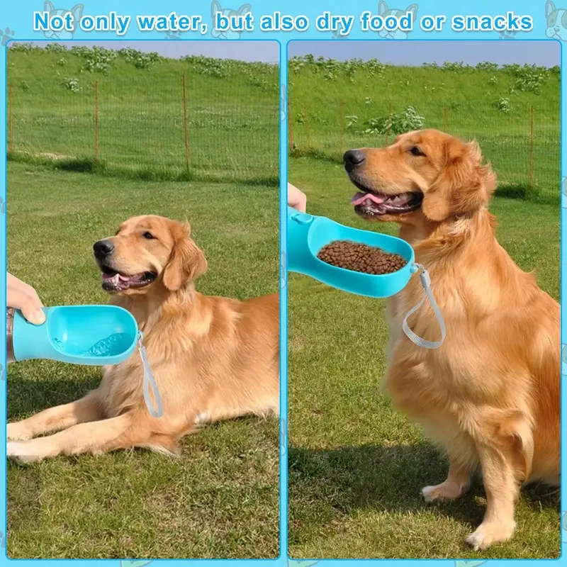 Botella de agua portátil 2 en 1 para perros y mascotas, para viajes,comederos para mascotas, cuenco para perros